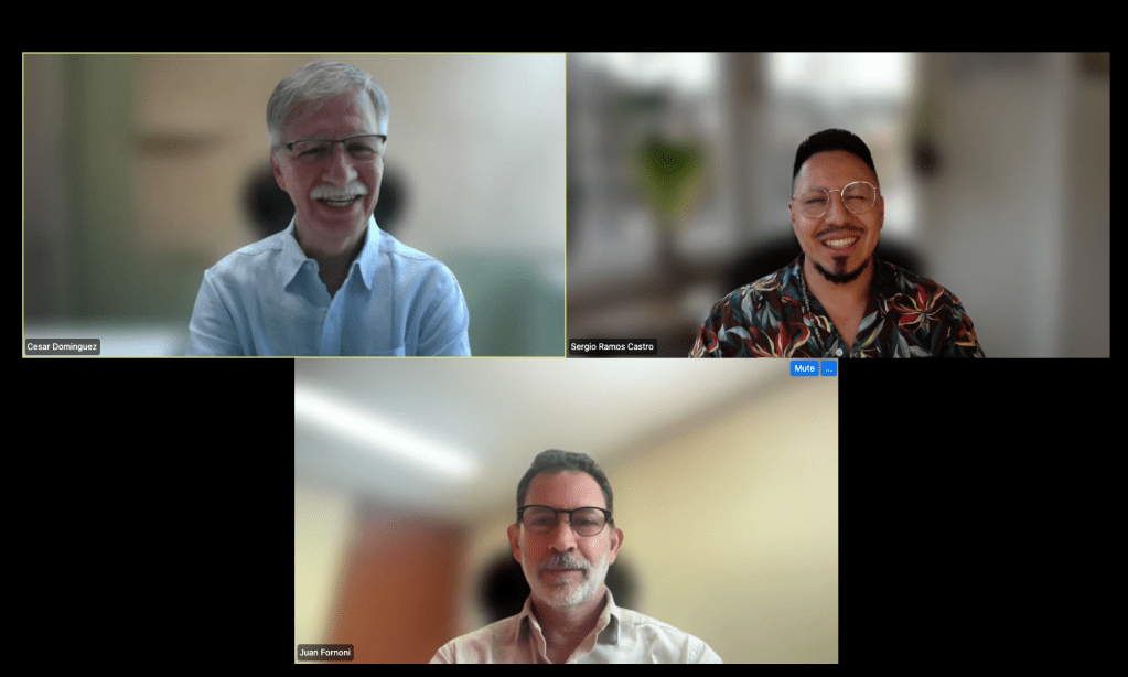 In the picture, from left to right, César Dominguez, Sergio Ramos and Juan Fornoni happily celebrating the publication. Unfortunately, Karina Boege could not join.