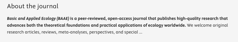 Happy to announce that I accepted an invitation to be part of the editorial board of the journal Basic and Applied Ecology (BAE), which is the flagship journal of The Ecological Society of Germany, Austria and Switzerland.